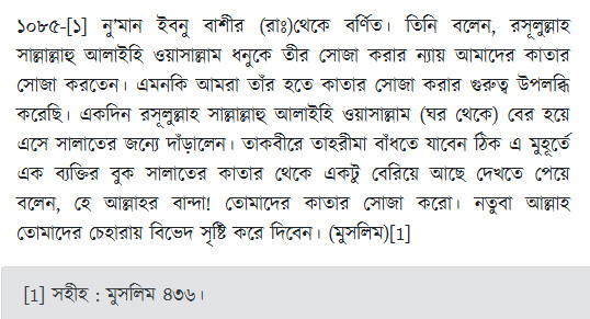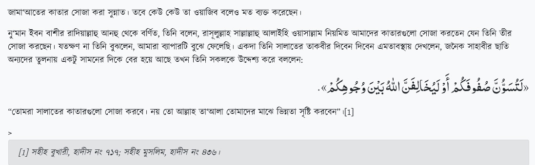 কাতার সোজা করার হাদীস